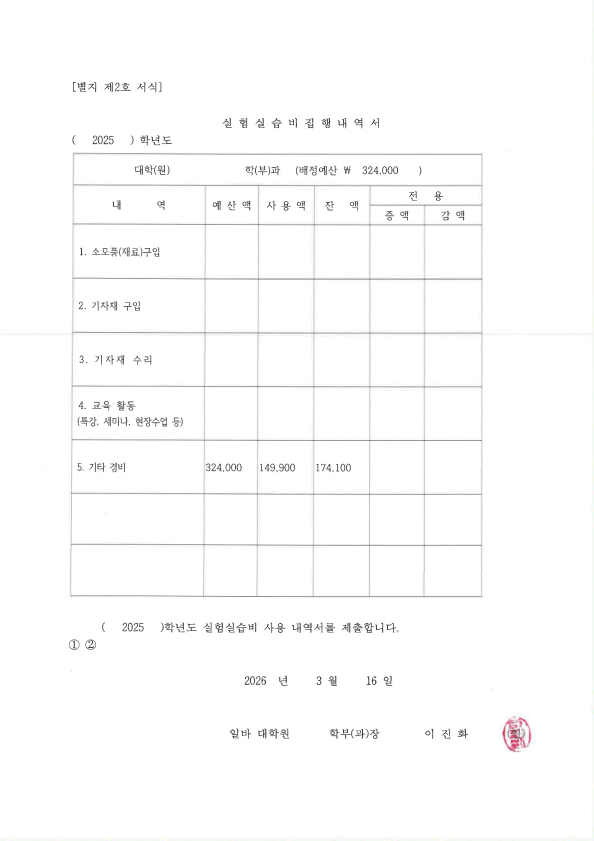 2026학년도 일반대학원 영어교육학과 실험실습비 사용계획서